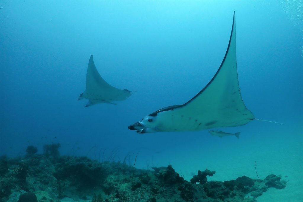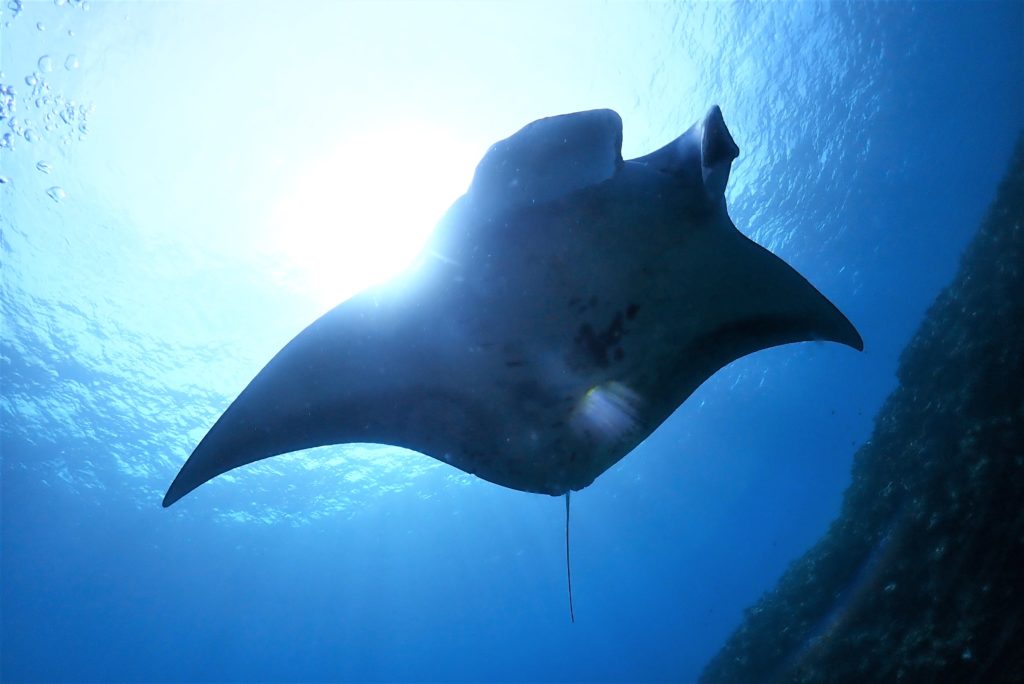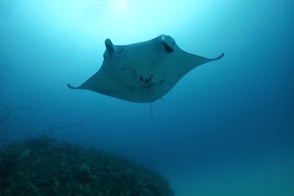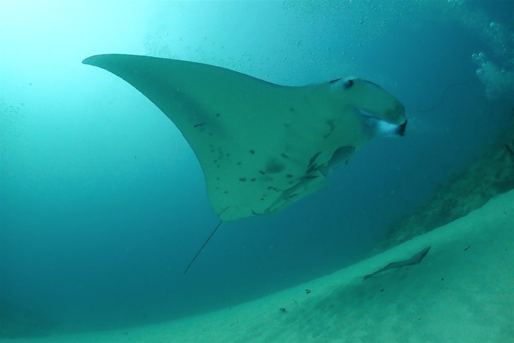 そしてその数メートル先には、ホバリング中の大きなマンタ😲