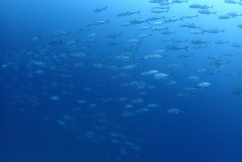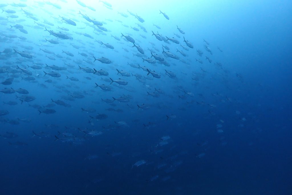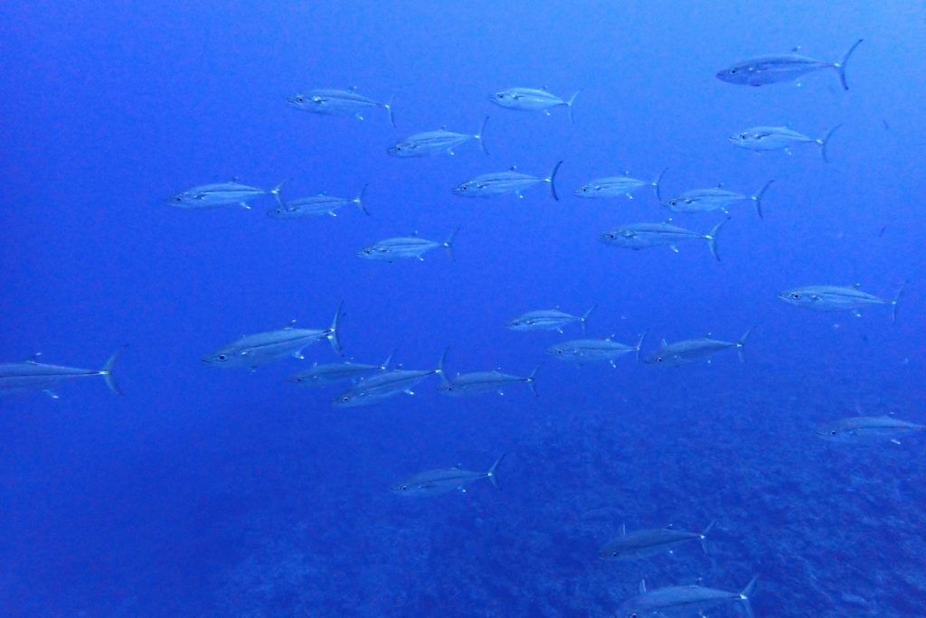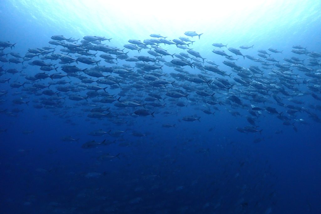 コガネシマアジ、ギンガメアジは、300オーバーの大群でした。