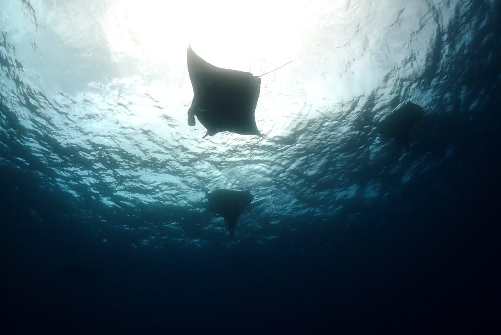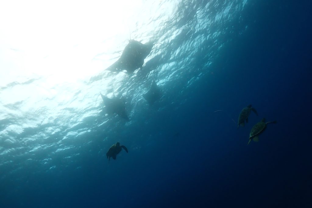 船の周りで、沢山のマンタがプランクトンをお食事中でした。