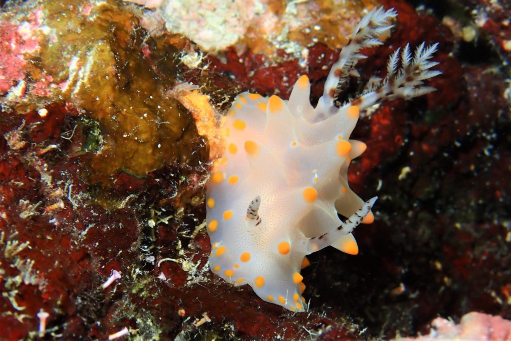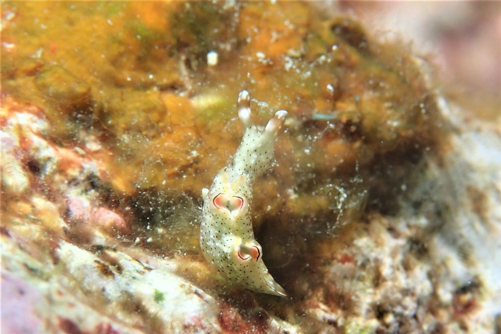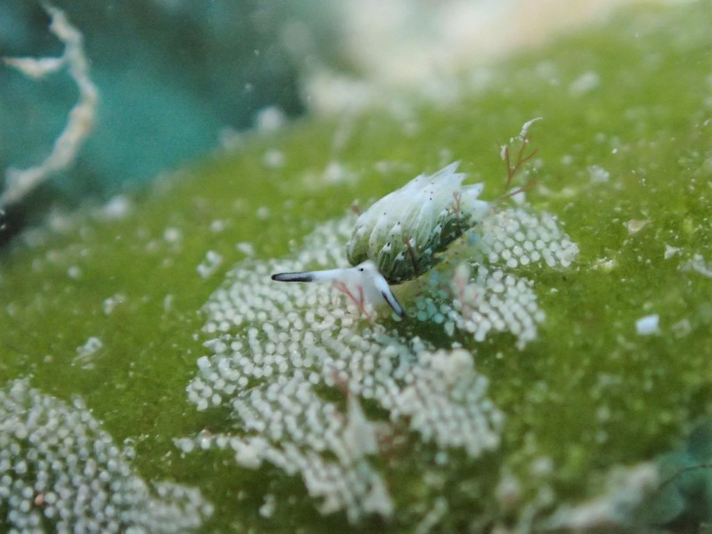 ウサギモウミウシ 白の粒粒はおそらく卵でしょうね。