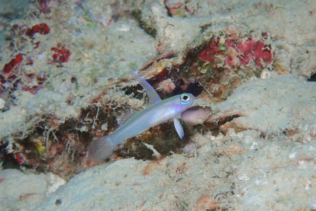 午前中はまだ風弱く、南西風に弱い名蔵湾でも潜れました♪