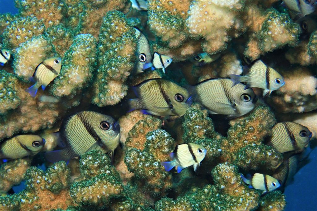 フタスジリュウキュウスズメダイの大家族